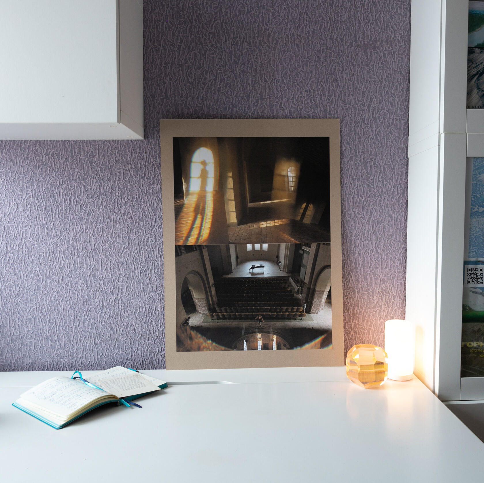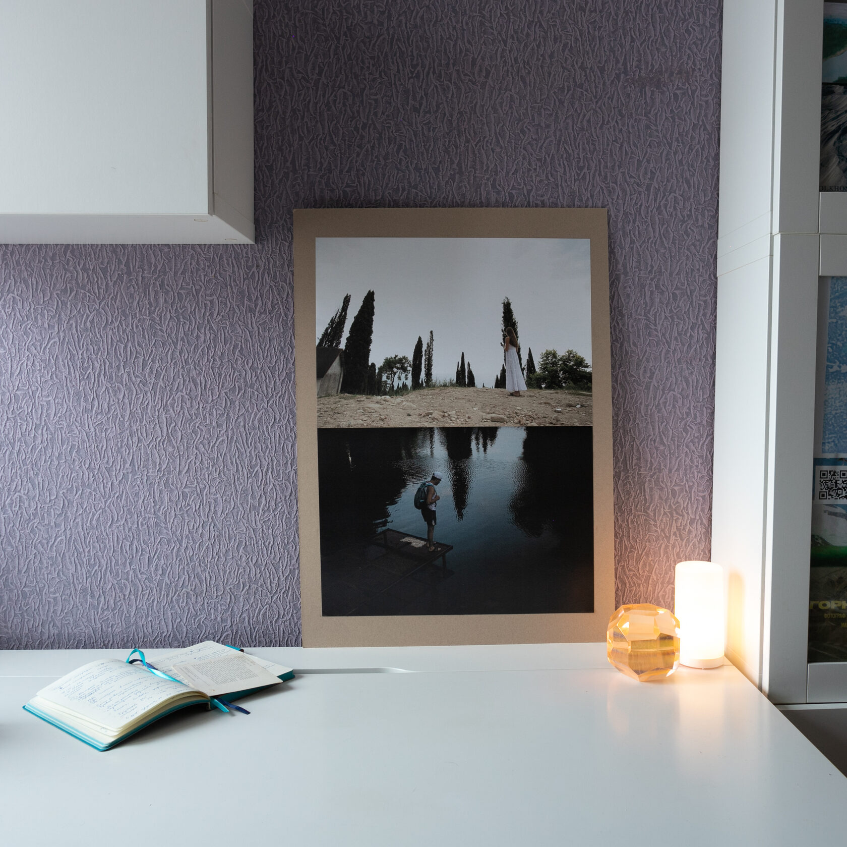Цифровая печать, крепление на макетный картон Размер 50х70 см Диптих, съемка с использованием стеклянной призмы Порядковый номер ПВ-08