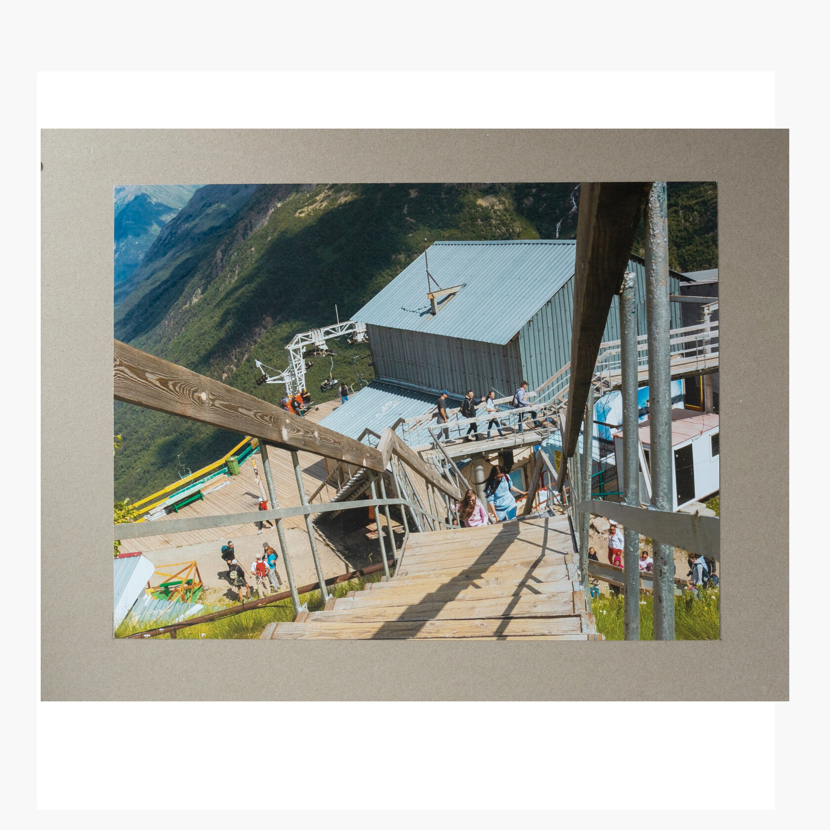В оживленные часы станция канатной дороги похожа на центральную улицу небольшого городка на фоне масштабных природных декораций. Серия «Горный стрит» исследует контраст природного и техногенного на стыке жанров пейзажной и стрит-фотографии. Приэльбрусье, гора Чегет